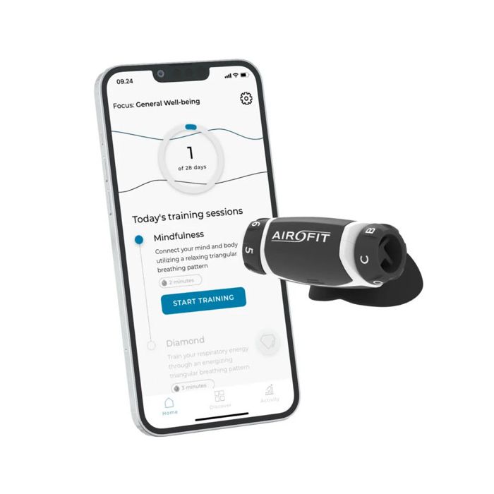 Voici l'Airofit Active, la dernière avancée en technologie d'entraînement respiratoire, conçue pour améliorer les performances physiques et le bien-être général grâce à des exercices de respiration guidés. En tant que successeur du premier appareil d'entraînement respiratoire véritablement intelligent au monde, l'Airofit Active est conçu pour améliorer la capacité pulmonaire, la force des muscles respiratoires et la santé globale avec ses fonctionnalités innovantes et son design convivial.