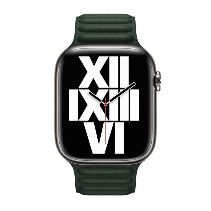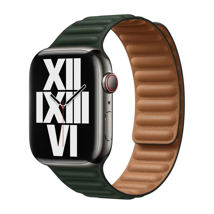 Bracelet Apple Leather Link pour Apple Watch M/L 42 mm / 44 mm / 45 mm / 49 mm Vert séquoia - ML803 - Automne 2022