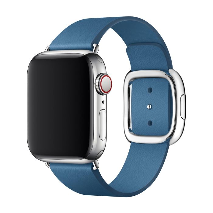 Bracelet Apple en cuir avec boucle moderne pour Apple Watch dans la couleur Cape Cod Blue.