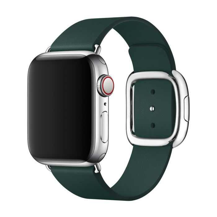 Bracelet Apple en cuir avec boucle moderne pour Apple Watch dans la couleur Forest Green.
