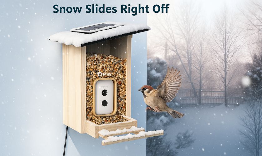 La Mangeoire Connectée Birdfy dispose d'une caméra HD 1080P et d'un objectif grand angle de 135 degrés, offrant des images claires et larges des oiseaux se nourrissant. Le système de reconnaissance par IA peut identifier plus de 6 000 espèces d'oiseaux, vous permettant d'en apprendre davantage sur les oiseaux qui visitent votre mangeoire tout en capturant chaque moment avec un détail impressionnant.