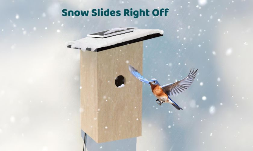 Le nichoir Birdfy est conçu pour résister aux conditions climatiques extrêmes et bénéficie d'une protection IP66 contre l'eau, assurant une performance fiable sous la pluie et par temps froid. La neige glisse facilement. La batterie de 9000mAh, associée à un panneau solaire pour la recharge, garantit une alimentation fiable, vous n'aurez donc jamais à vous soucier d'une batterie déchargée pendant vos sessions d'observation des oiseaux prolongées.