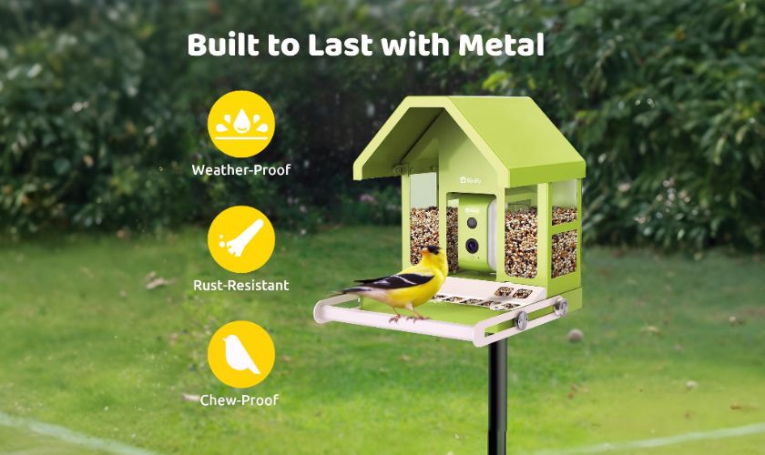 Le mangeoire oiseaux extérieure Birdfy Metal Lite allie technologie et robustesse. Sa conception en métal durable et résistant aux morsures protège vos graines et assure une longue durée de vie, même face aux visiteurs les plus curieux. Avec une capacité de 2,5 L, elle réduit la fréquence des recharges et permet des observations ornithologiques prolongées.