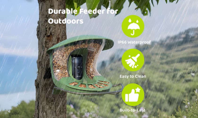La Birdfy Feeder 2 Pro est conçue pour résister aux intempéries. Avec un indice de protection IP66 contre l’eau, elle garantit des performances fiables par tous les temps. De la pluie à la neige, votre observation des oiseaux continue, quelles que soient les conditions météorologiques.