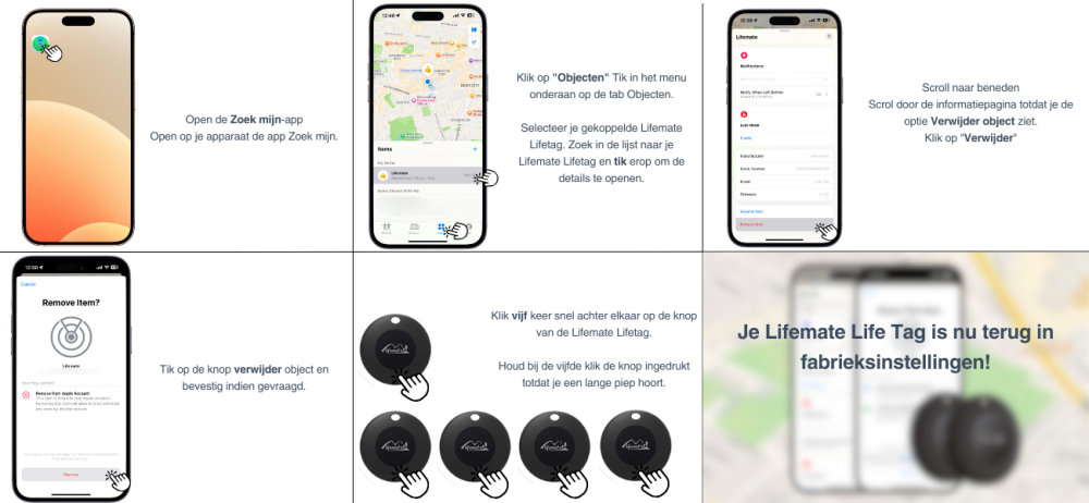 Votre Lifemate Life Tag est désormais réinitialisé et prêt à être configuré à nouveau.