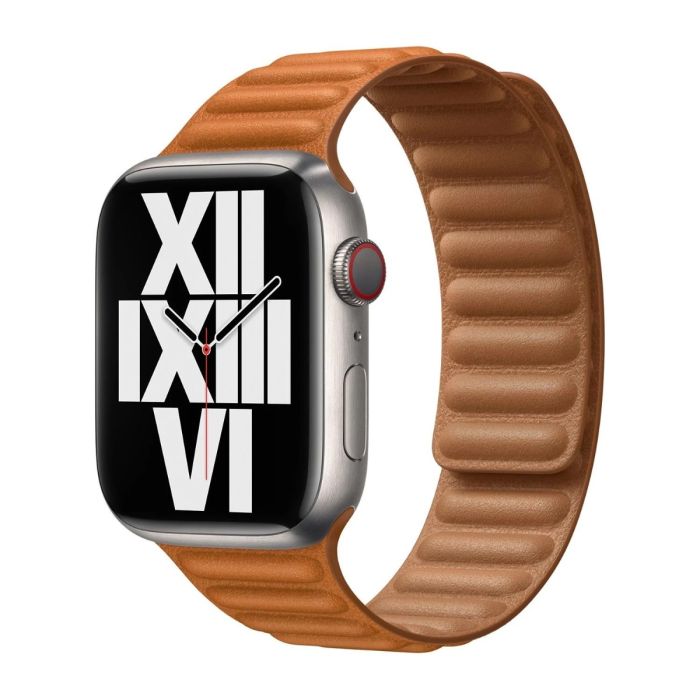 Bracelet en cuir Apple Leather Link pour Apple Watch de couleur Brun doré.