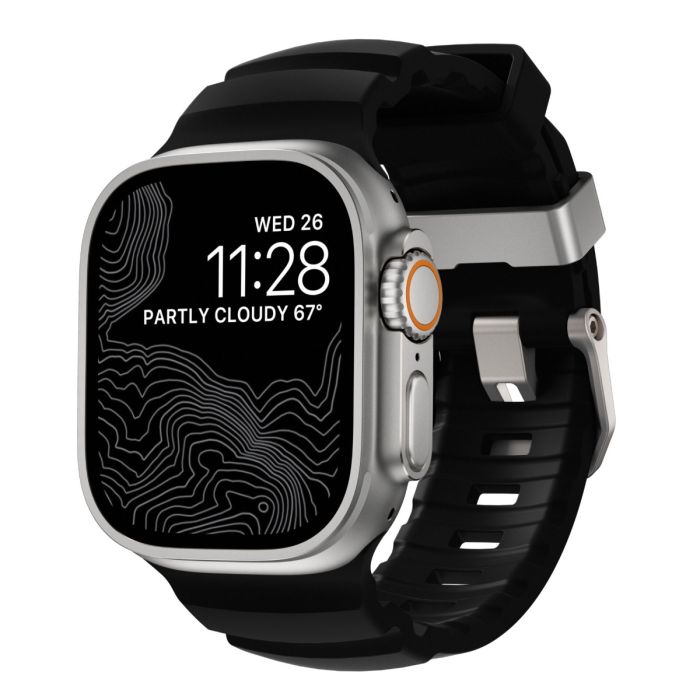 Le bracelet Nomad Rocky Point en couleur Connecteur Carbon Noir Naturel apporte à toute Apple Watch un style moderne et robuste, reflétant les performances de l'Apple Watch Ultra, tout en étant idéal pour les entraînements intensifs et un usage quotidien. Convient à tous les modèles Apple Watch (Ultra) de 42 / 44 / 45 / 49 mm.