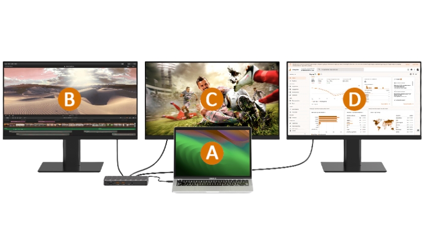 Grâce à la technologie DisplayLink, les modèles MacBook Air/Pro avec processeurs M1 et M2—habituellement limités à un écran externe—peuvent désormais gérer jusqu'à trois écrans externes étendus.