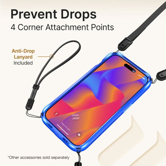 Conçue pour les aventures quotidiennes, la Coque Influence Catalyst dispose d'une prise texturée anti-dérapante pour éviter les chutes accidentelles. Elle comprend également une lanière anti-chute, testée pour supporter jusqu'à 10 kg, vous offrant la liberté d'être mains libres. De plus, le système de fixation aux quatre coins vous permet d'ajouter des accessoires optionnels pour encore plus de polyvalence.
