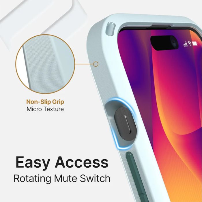 Prenez le contrôle précis de la fonction silencieuse de votre iPhone grâce à l'interrupteur rotatif mute breveté de la Coque Influence Catalyst. Cette fonctionnalité unique vous permet de basculer facilement le mode silencieux d'un simple tour, garantissant que vous ne manquerez jamais un moment important.