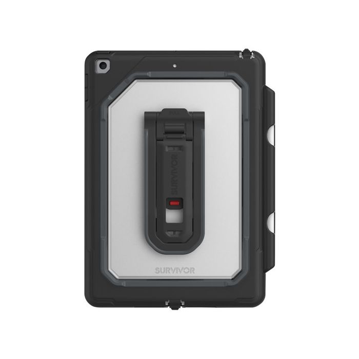 L'étui Griffin Survivor Endurance 2 est livré avec un support intégré. Vous pouvez ainsi placer votre iPad à l'horizontale et profiter de vos films préférés. De plus, le système de montage intégré vous permet de fixer des accessoires assortis à la coque. Cela vous permet d'utiliser votre iPad de plusieurs façons. Il est possible de fixer un support à la housse afin de pouvoir positionner votre iPad sous différents angles. Il est également possible de fixer une poignée rotative détachable, ce qui permet de tenir l'iPad d'une seule main.