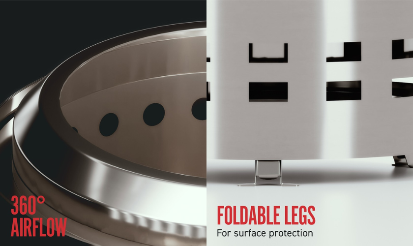 Grâce à sa conception avancée, vous profiterez d'un feu plus efficace. Le système intelligent de circulation d'air minimise la fumée et maximise le confort, ce qui est idéal pour les sorties en camping ou les soirées agréables dans votre jardin.
