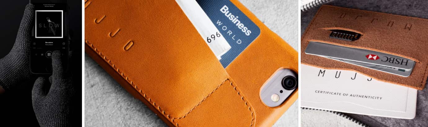 Il neige ou il pleut et il fait tellement froid qu'on ne peut pas sortir sans gants. Avec les gants traditionnels, il est difficile d'utiliser votre smartphone. Pour résoudre ce problème, Mujjo a développé des gants permettant d'utiliser les écrans tactiles. Contrairement à d'autres gants tactiles, Mujjo a intégré cette technologie sur toute la surface du gant, vous permettant d'utiliser votre smartphone sans être limité à seulement 1 ou 2 doigts.