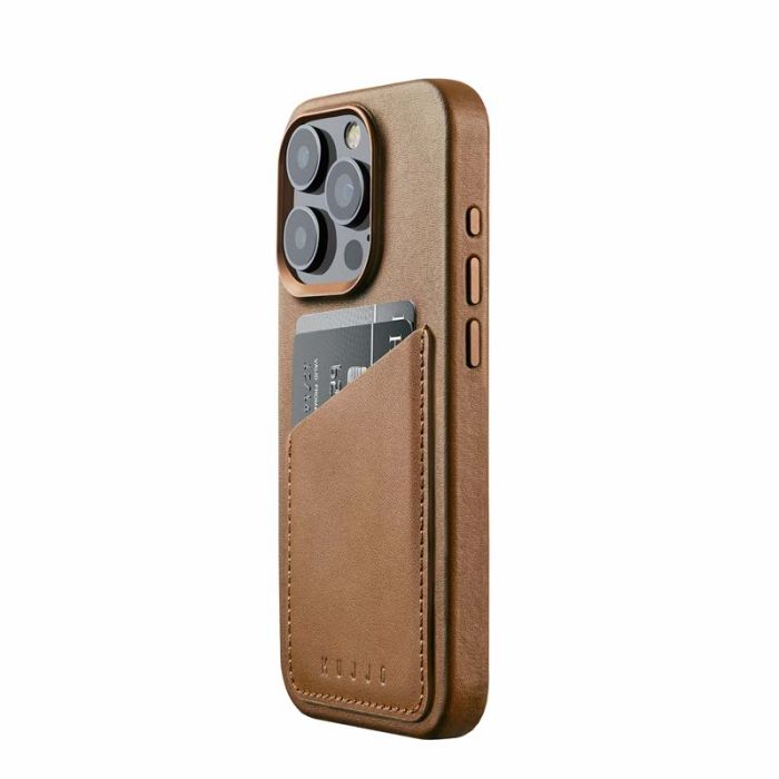Mujjo Leather Wallet Case iPhone 15 Pro brun