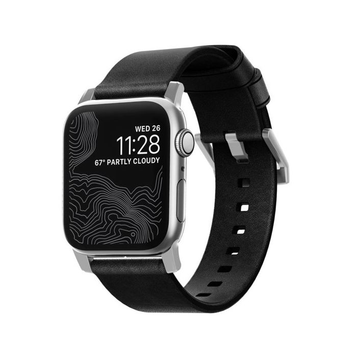 Nomad - Modern active - Bracelet en cuir Apple Watch 42mm / 44mm / 45mm / 49mm - Noir / Argent