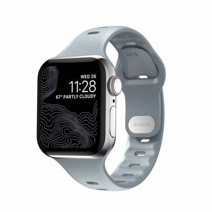 Le bracelet Nomad Sport Slim de couleur bleu glacier donne à toute Apple Watch un look moderne et sportif, tout en étant idéal pour les entraînements intenses et l'utilisation quotidienne. Convient à tous les modèles d'Apple Watch de 38 / 40 / 41 mm.