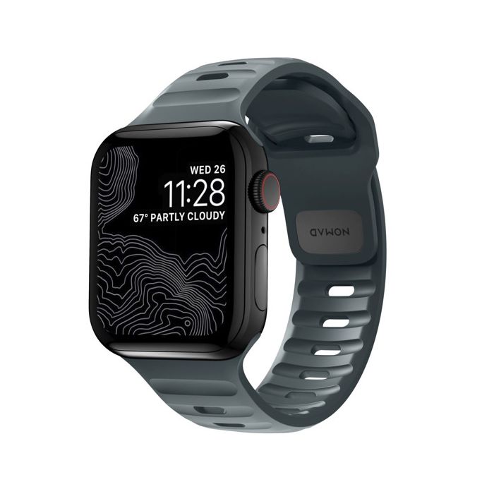 Le Nomad Sport Strap V2 donne à toute Apple Watch un look moderne et athlétique, tout en étant parfait pour les entraînements intensifs et l'utilisation quotidienne. Le Sport Strap V2 est léger et respirant, grâce aux canaux de ventilation internes situés sur la partie inférieure. Le Sport Strap est fabriqué à partir d'un caoutchouc fluorocarboné souple et flexible pour un confort supplémentaire. Le fluorocarbone se nettoie facilement à l'eau et au savon. Ce matériau offre un équilibre idéal entre confort et durabilité.