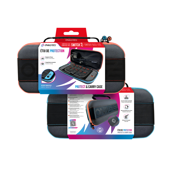 La housse de transport Oniverse pour Nintendo Switch 2 / Switch / OLED offre une excellente protection et une organisation optimale pour votre console et ses accessoires, les gardant en sécurité lors de tous vos déplacements. Avec son design gris élégant, elle est compatible avec tous les modèles de Nintendo Switch : Switch, Switch OLED et Switch Lite.