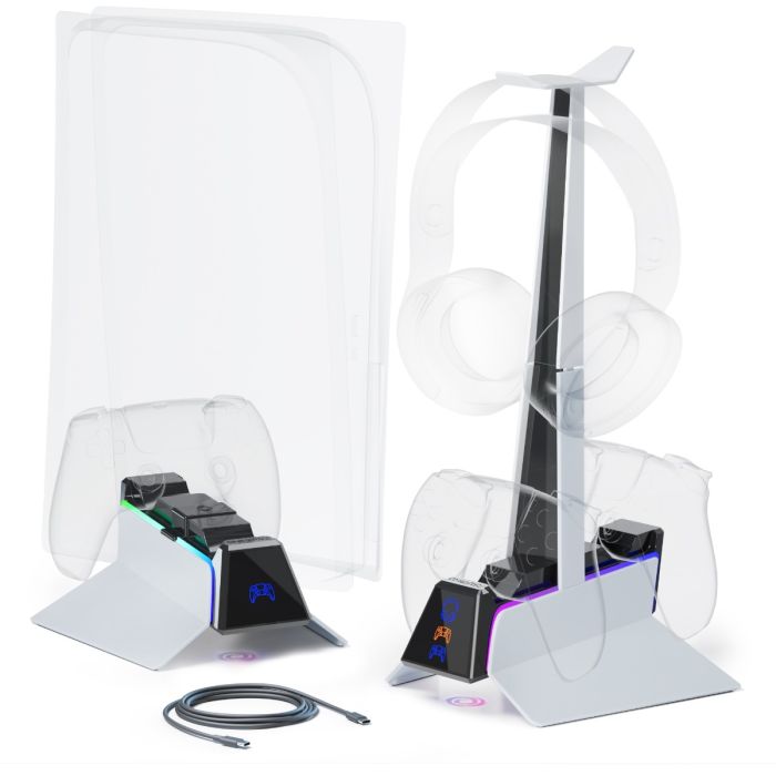 La Station de Recharge Rapide Oniverse X3 est la solution ultime pour charger vos accessoires PS5 de manière efficace et élégante. Capable de charger jusqu'à trois appareils simultanément, dont deux manettes et un casque sans fil USB-C, cette station garde votre installation de jeu organisée et prête à l'action.