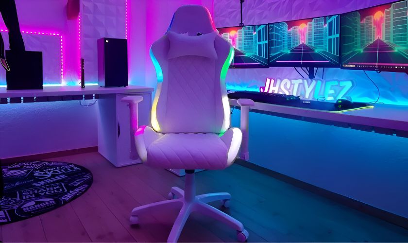 Chaise gaming avec éclairage RGB/LED intégré et télécommande