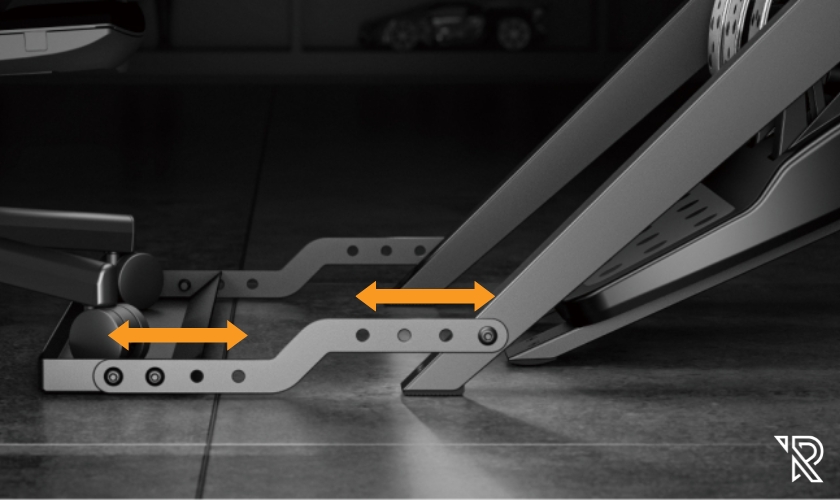 Le cadre en acier avec revêtement en poudre permet d’ajuster les angles du volant et des pédales – pour une stabilité maximale.