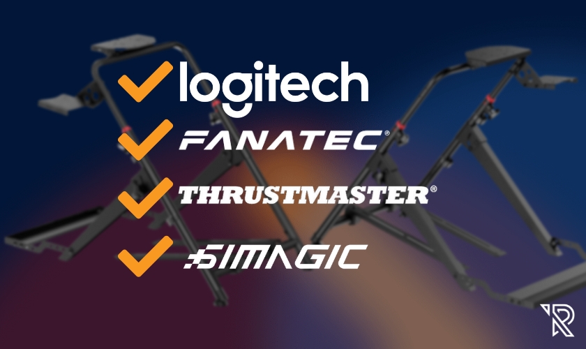 Compatible avec Logitech, Fanatec, Thrustmaster et Simagic. Les points de fixation sont pré-percés pour une installation rapide.