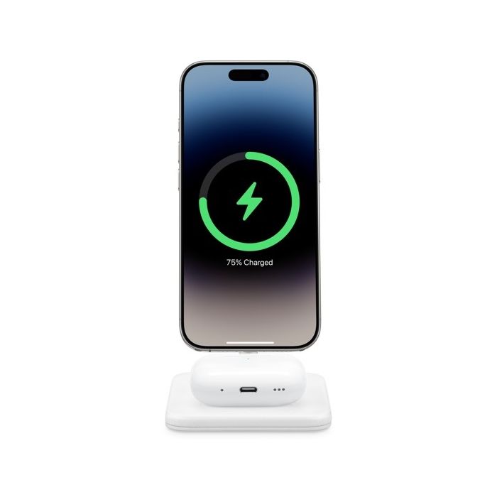 Le Twelve South HiRise 2 Deluxe 2-en-1 Socle de Charge blanc est une solution de charge premium conçue pour recharger sans fil votre iPhone et vos AirPods simultanément. Il dispose d'un chargeur magnétique Qi2 de 15W pour iPhones et d'un chargeur sans fil de 5W intégré à la base pour les AirPods ou un second appareil.
