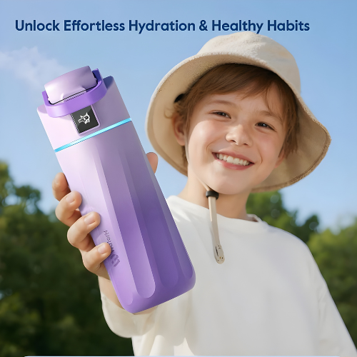 La bouteille dispose d’un écran LED simple et adapté aux enfants, qui affiche la consommation d’eau en temps réel. Associée à l’application gratuite WaterH, les parents peuvent surveiller l’hydratation, définir des rappels et encourager des habitudes saines de manière ludique.
